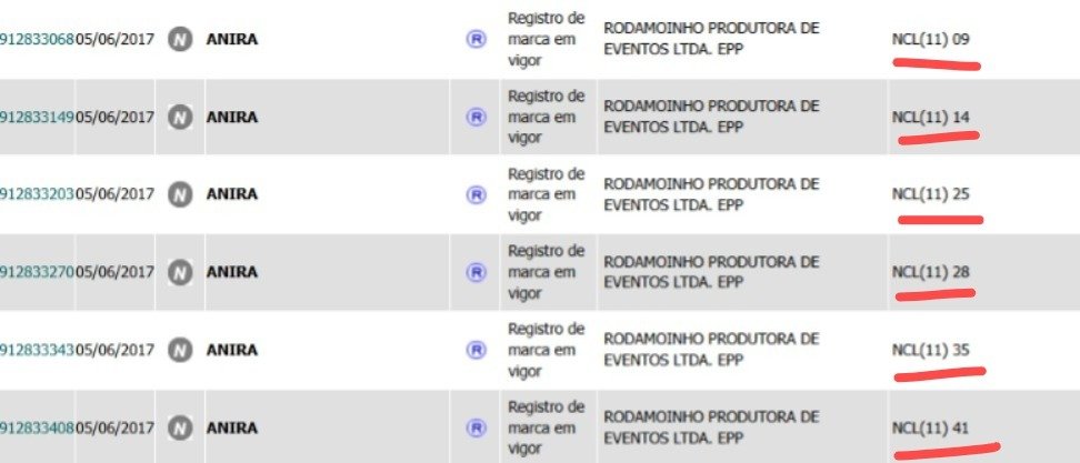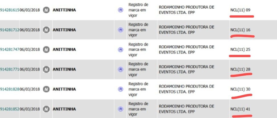 Além disso, cada uma dessas marcas são registradas em vários segmentos diferentes, como: