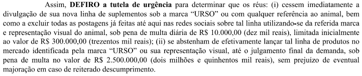 E o pior: determina que se abstenham de lançar a linha de produtos no mercado, sob pena de multa no valor de R$ 2.500.000,00.