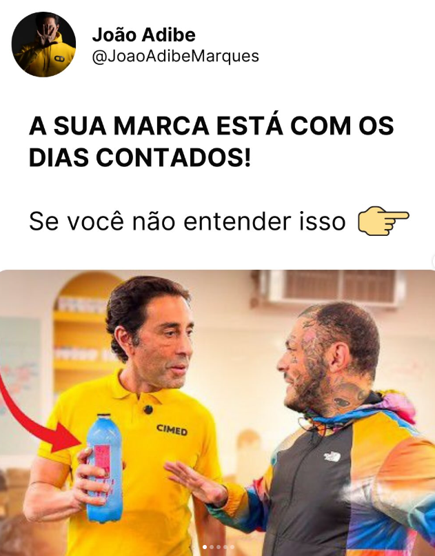 O interessante é que, recentemente, Adibe fez um post em seu instagram intitulado “A SUA MARCA ESTÁ COM OS DIAS CONTADOS SE VOCÊ NÃO ENTENDER ISSO”.