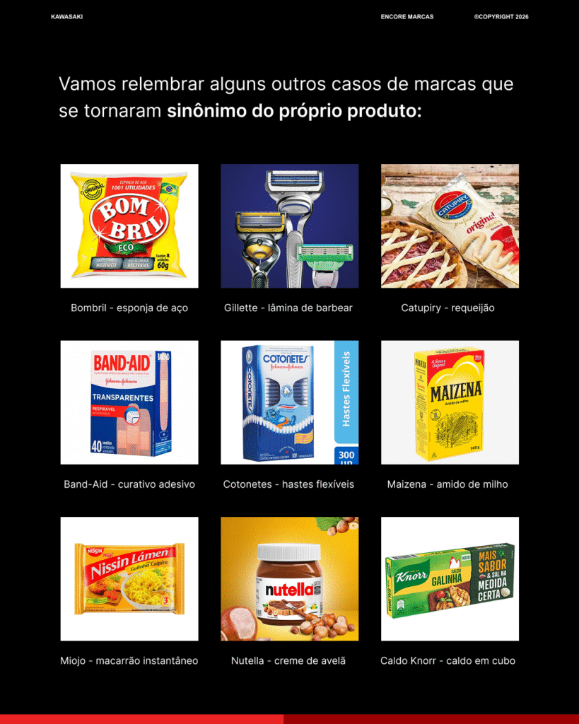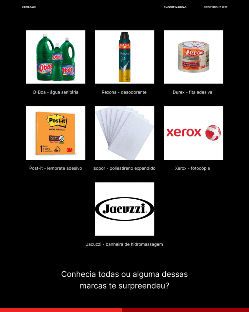 Quando uma marca se torna sinônimo de um produto específico, ela atingiu um nível de reconhecimento altíssimo de força no mercado. É o caso de nomes que passam a ser usados no dia a dia para identificar toda uma categoria, não apenas a empresa.