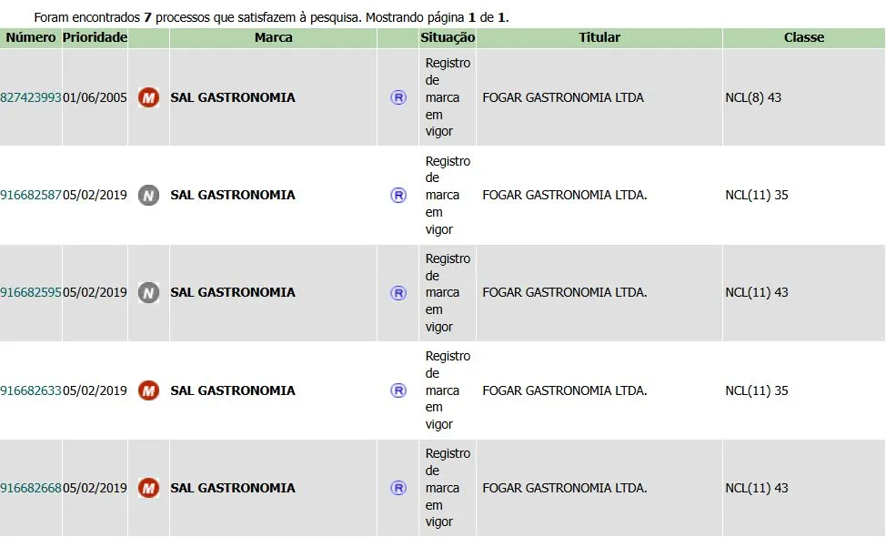 ➡️Sal Gastronomia do Chef Henrique Fogaça – 7 processos no INPI