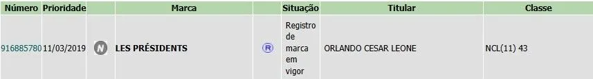 ➡️Les President do Chef Eric Jacquin – 2 processos em nome de ORLANDO CESAR LEONE (sócio do Jacquin), 1 em vigor